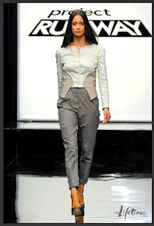 Becky: She won the fabric competition between her and Anthony. I like this look. I hope she doesn’t get knocked down a lot of points just because the fabric was used by two different people. I like Becky.
